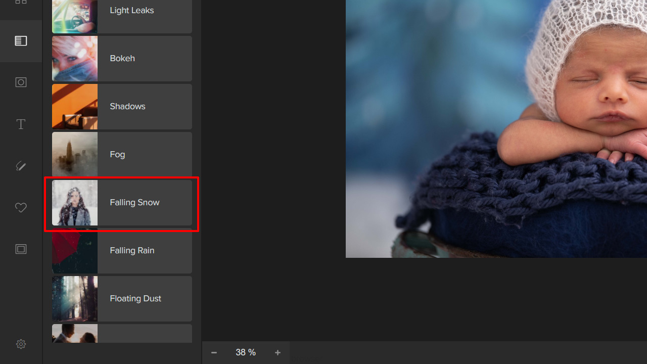Step 3: Choose the Falling Snow effect from the list of Overlays.