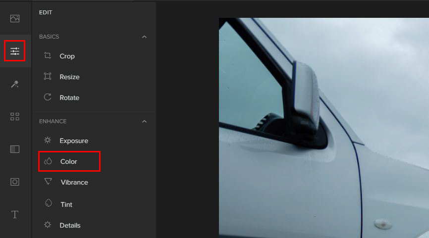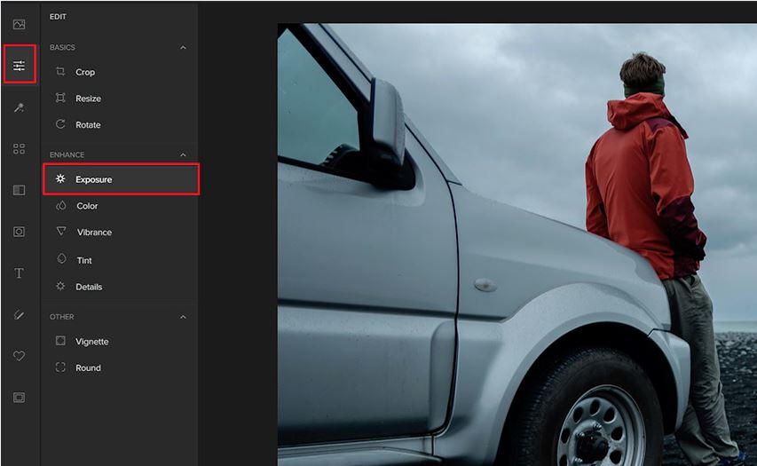 The first thing you need to do is upload one of your underexposed images in Colorcinch, or a similar online photo editor.