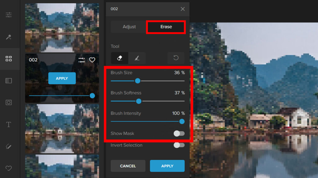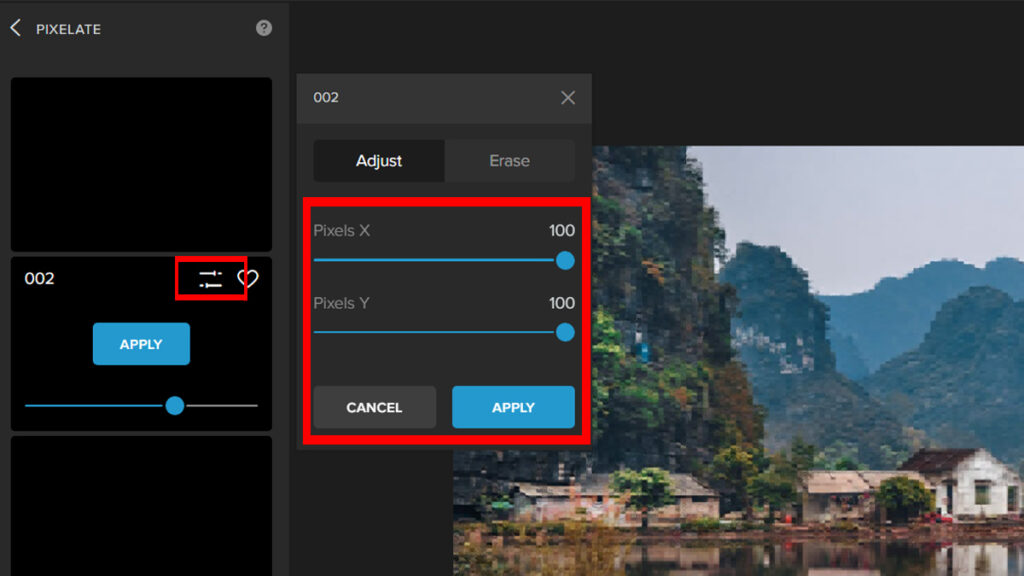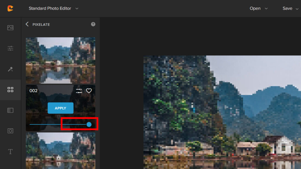 Step 3: Pick a Pixelate Filter and adjust the Slider to change the intensity of the filter.