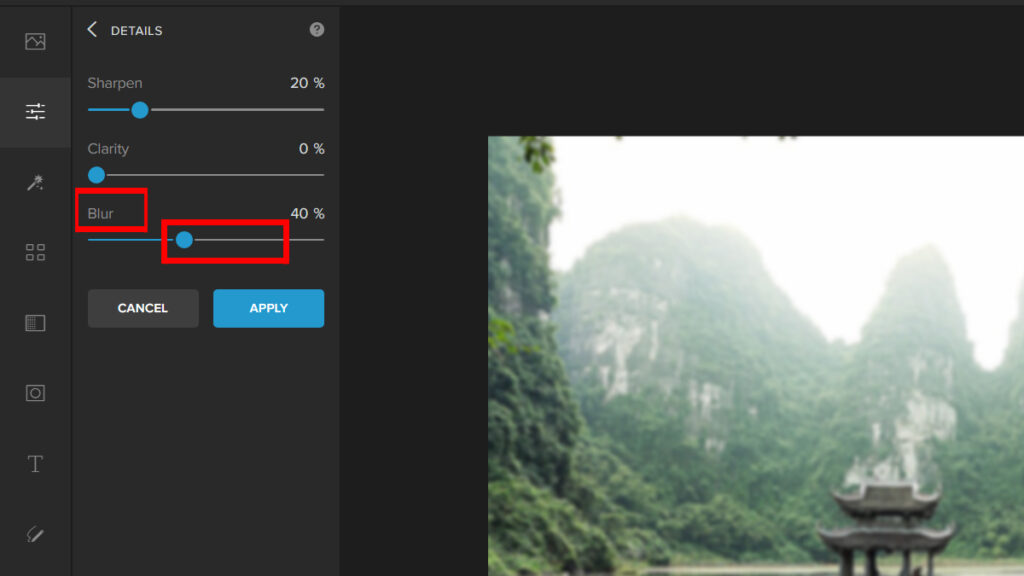 Step 3: On the Details panel, adjust the Blur Slider to get the desired intensity.