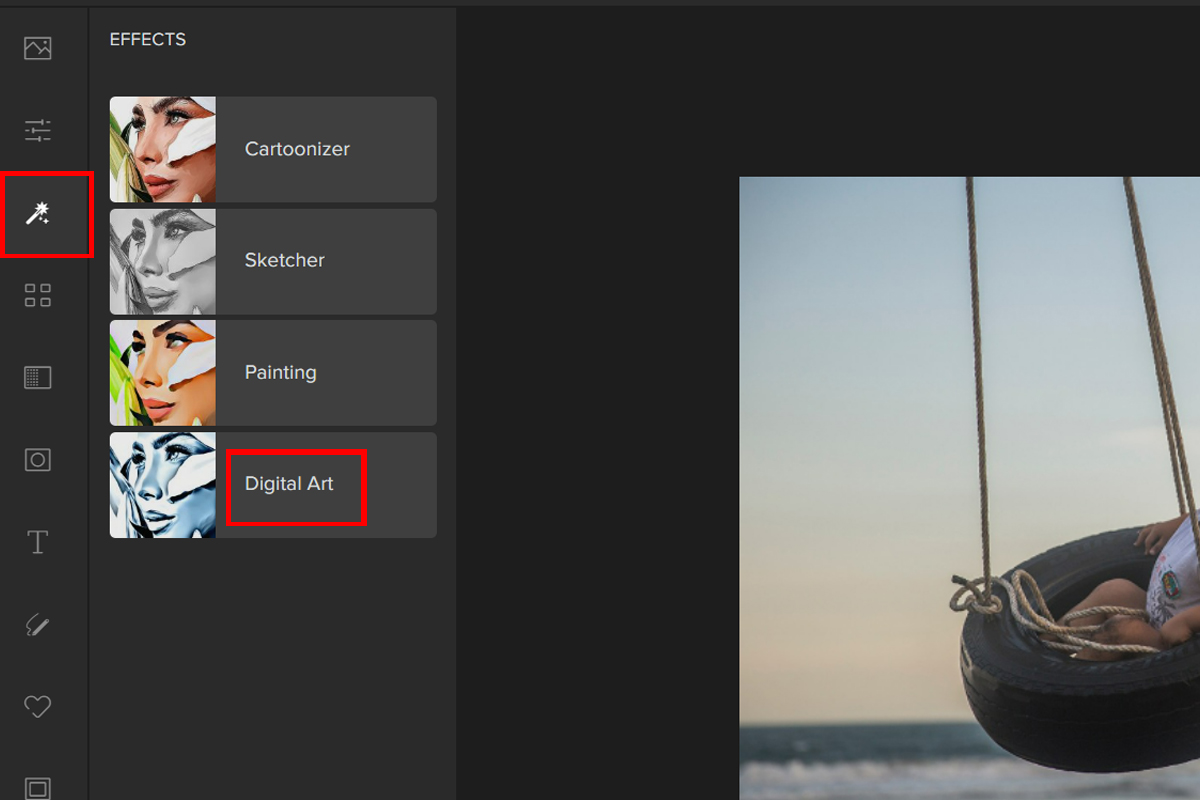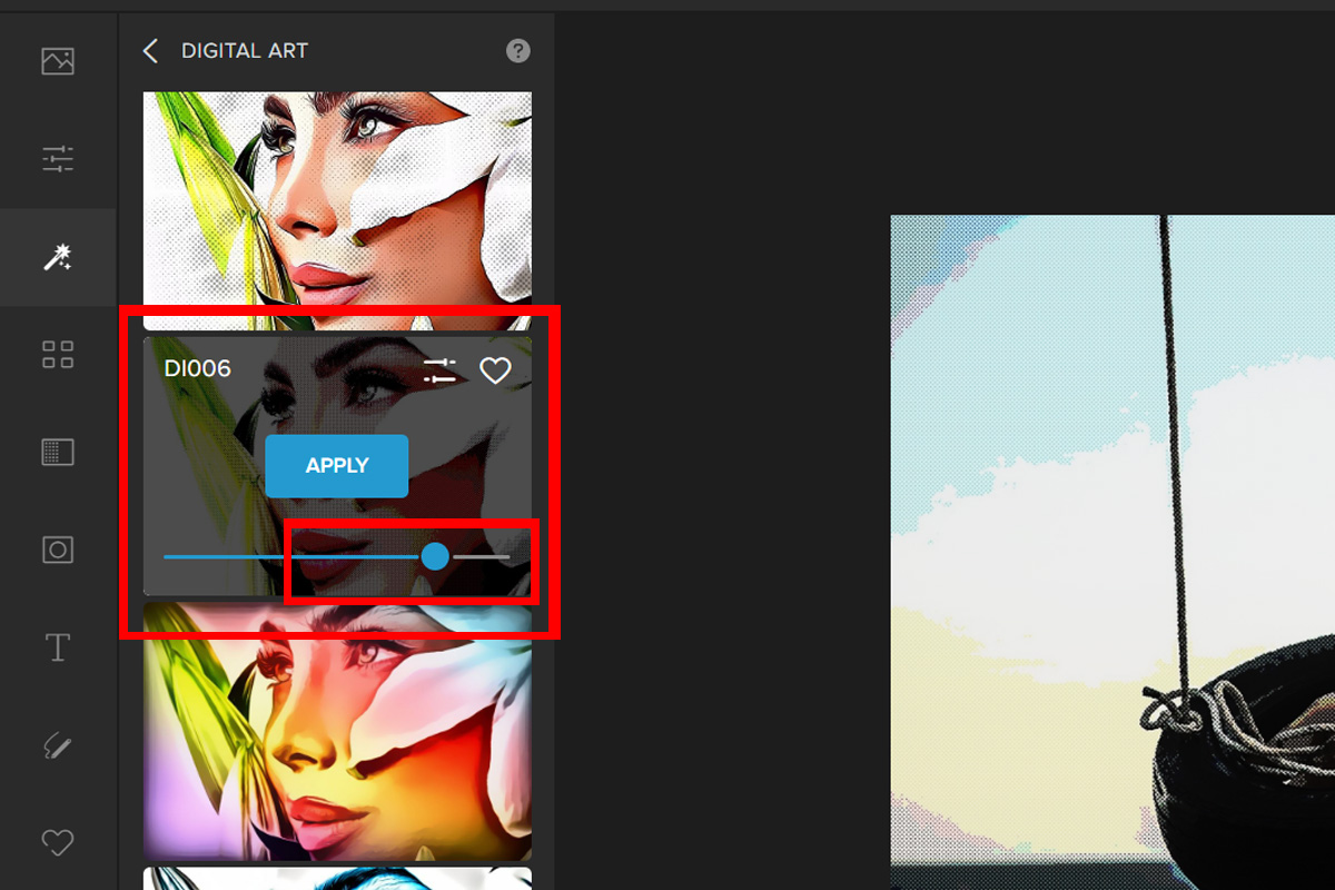 Step 3: Pick a Digital Art filter. For this example, we will be using DI006. Adjust the Slider to change the filter’s intensity.