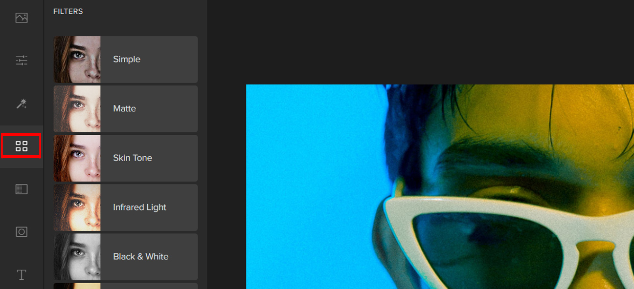 Step 2: Navigate to Filters on the left side of the panel and choose a filter that will fit the aesthetic of your image.