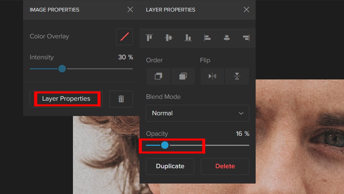 Step 4: Change the Opacity of the image by clicking on the Layer Properties button. Adjust the Slider until you are satisfied with the result.