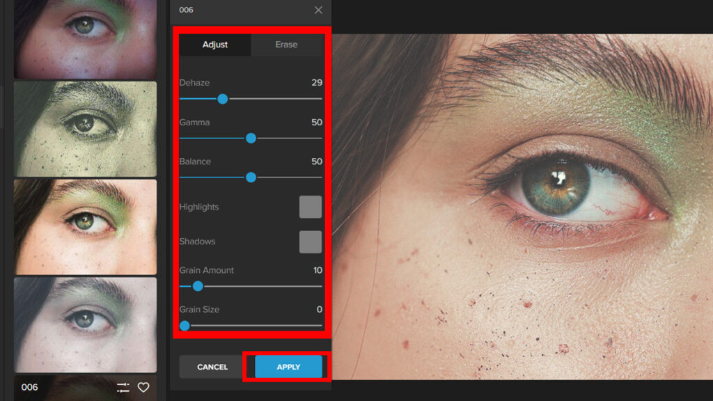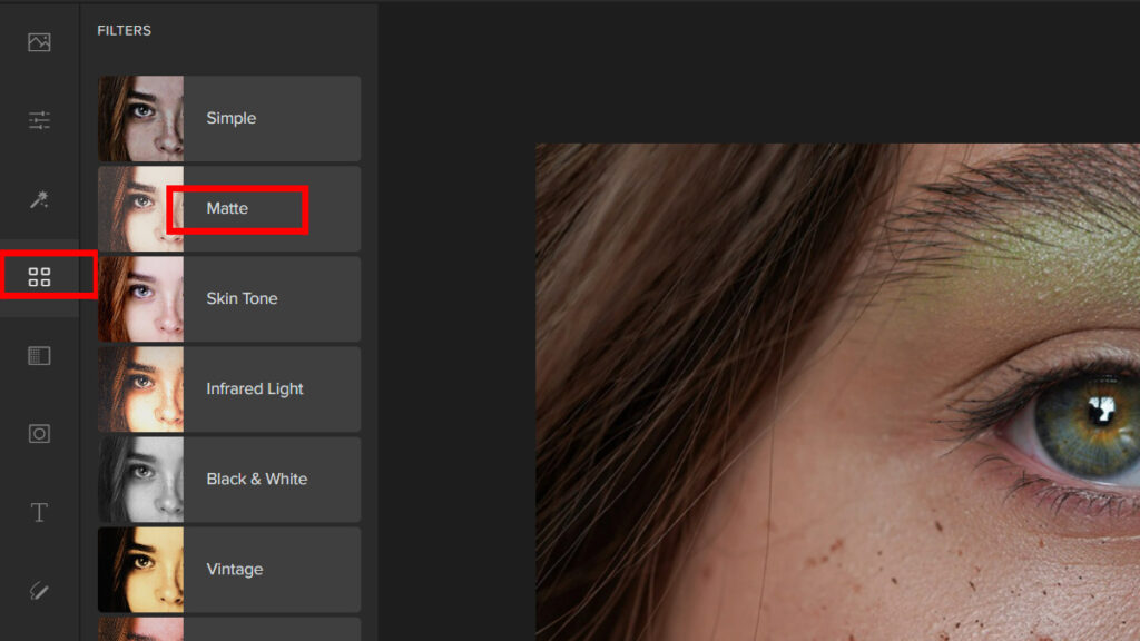 Step 3: Choose a Matte filter and adjust the Slider to change its intensity.