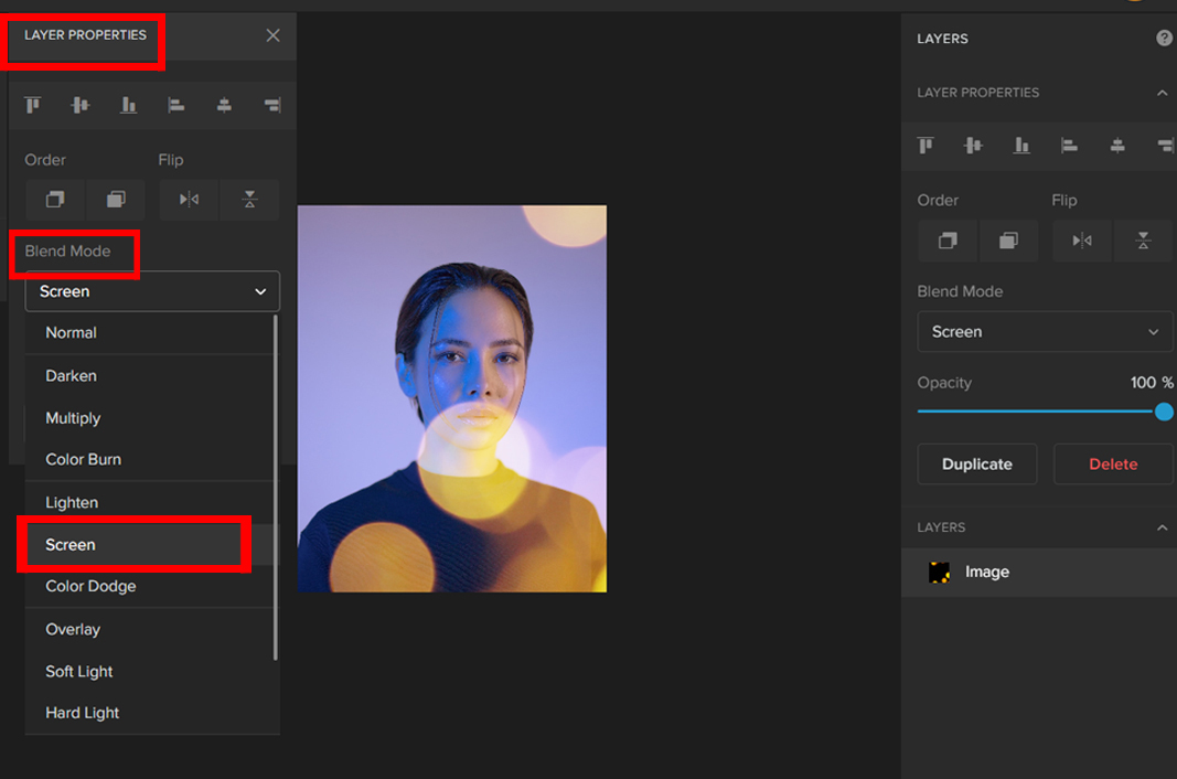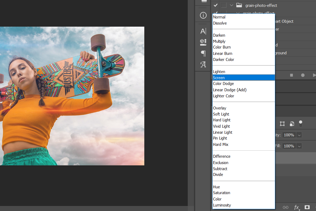 Pick a Blending mode that will work for your image. We will use Screen mode for this example.