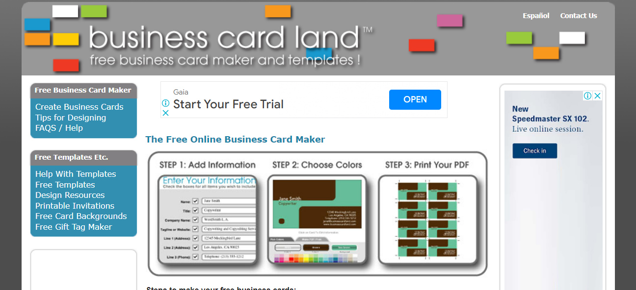 Business Card Land has a business card maker that is easy to use and only has a few steps with it’s card template. First, pick a layout. Next, put all of your contact information into a form. And lastly, change the colors on your template so they fit with your brand.