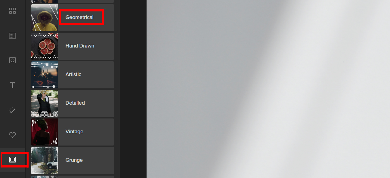 Step 5: Choose any Geometrical Frame and adjust Opacity to your liking.