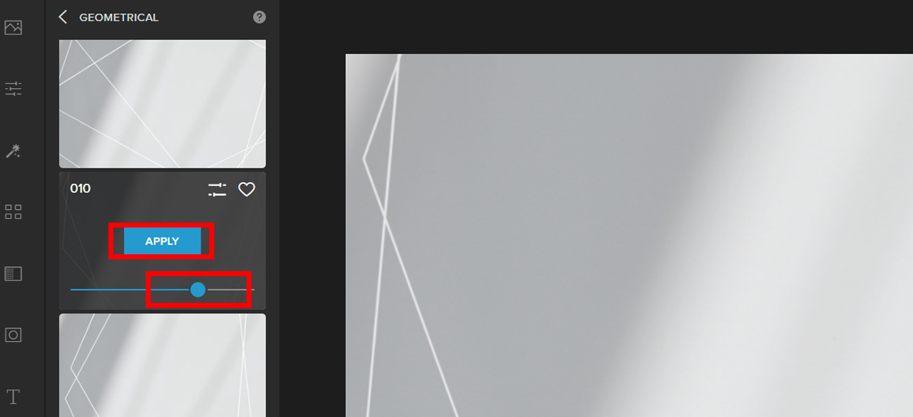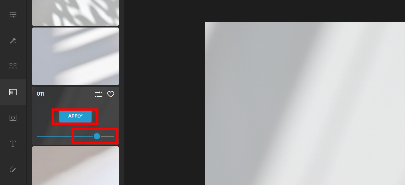 Step 3: Choose a Shadow Filter and adjust the slider to change the Opacity. Click Apply once satisfied.