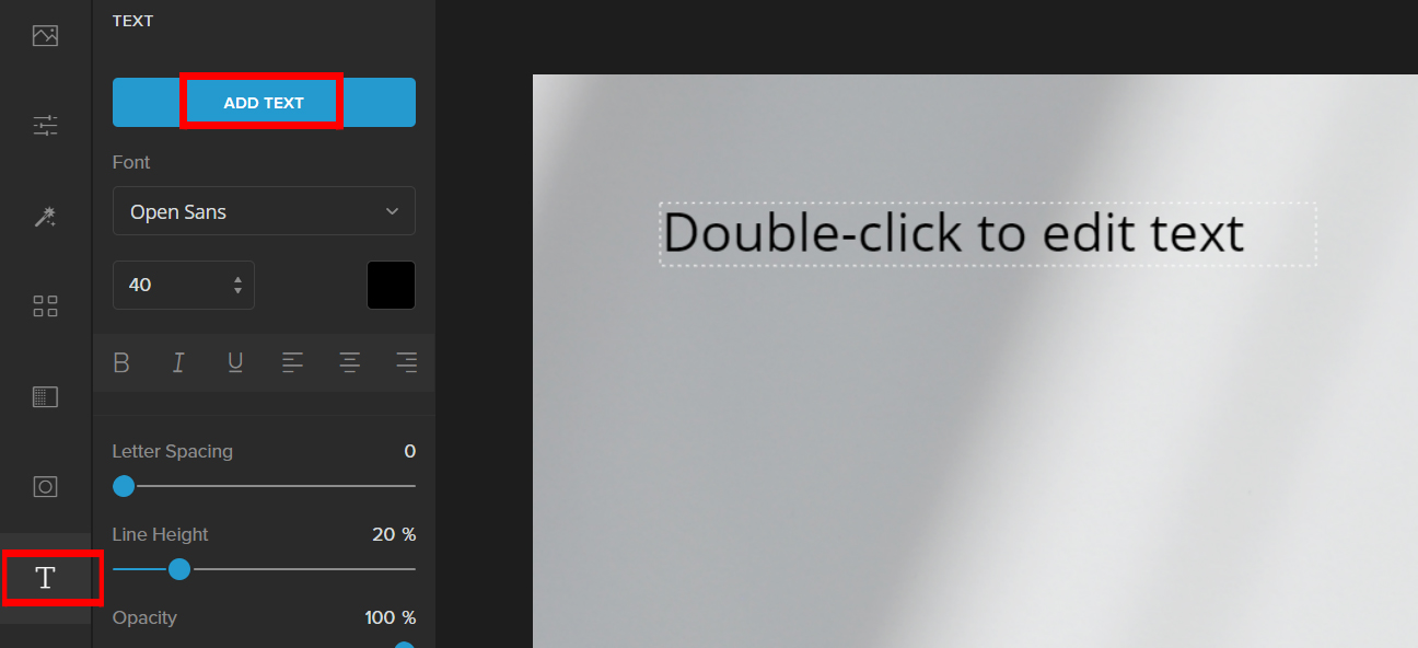 Step 6: Now for the most important part, we will be adding your business details. To do this navigate to Text — Add Text.