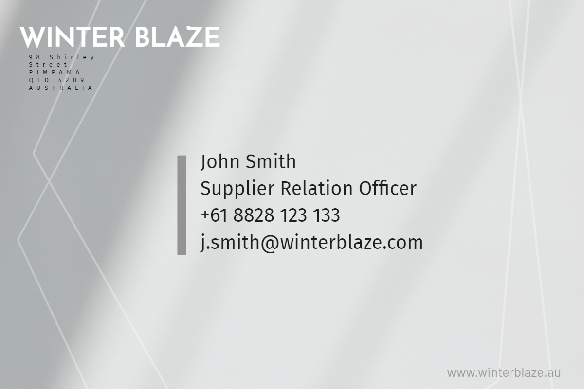 Your business card should have the following details: