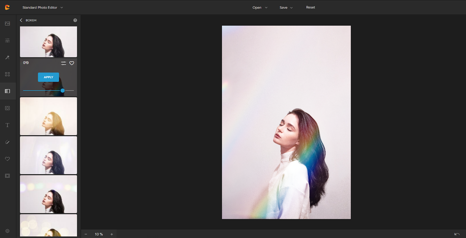 For this particular photo, we’re going to use the “019” Bokeh effect. The rainbow colors in this bokeh style add a subtle pop of color to the original.