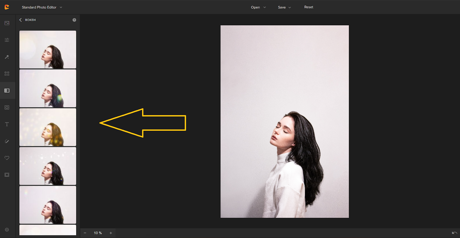 For this particular edit, we’re going to try the “Bokeh” overlay in Colorcinch.