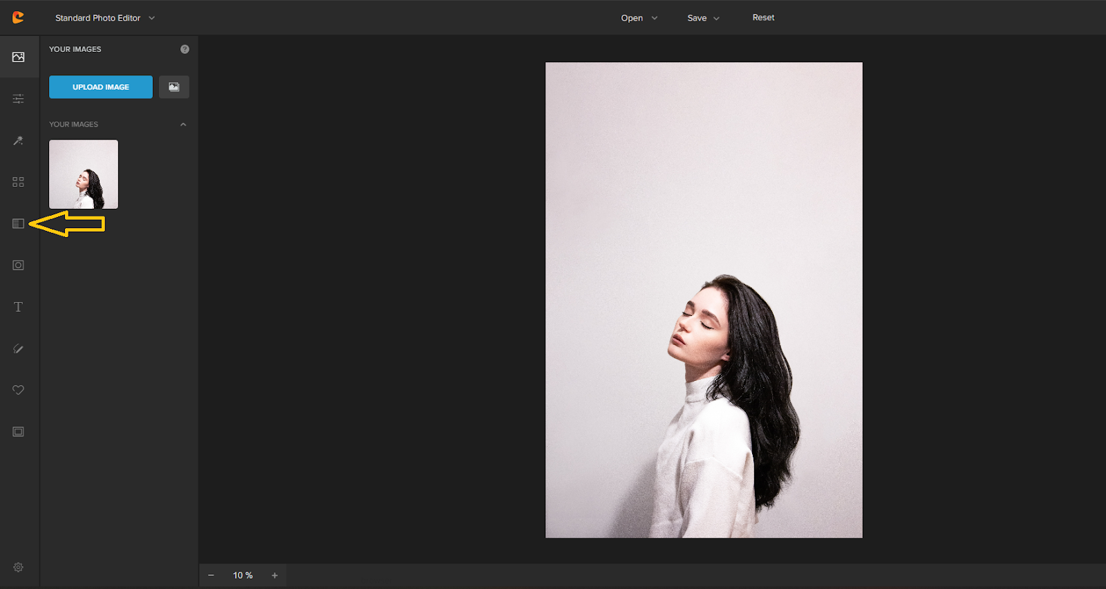 Once your photo is ready, click on the Overlay icon in Colorcinch.