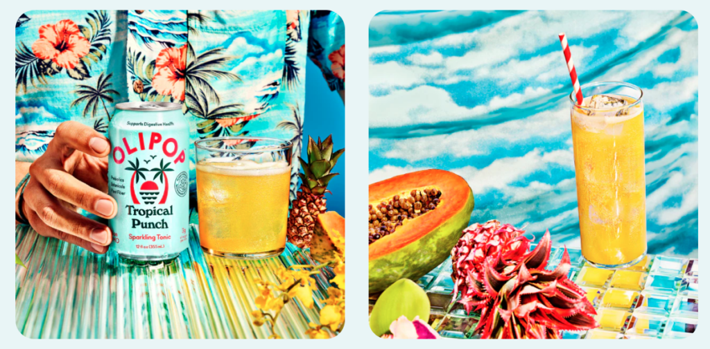 Olipop is an example of a company that does a fantastic job of staying away from stock photos on its website. Instead, they use colorful images that share the best way to enjoy their healthy soda. These images are eye-catching and also show their product in an additional context.